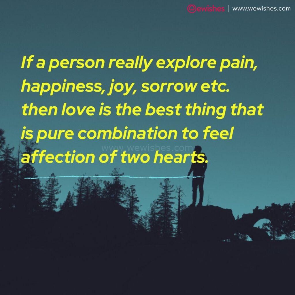 - If a person really explore pain, happiness, joy, sorrow etc. then love is the best thing that is pure combination to feel affection of two hearts.