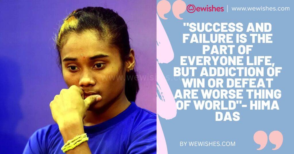"Success and failure is the part of everyone life, but addiction of win or defeat are worse thing of world"- Hima Das